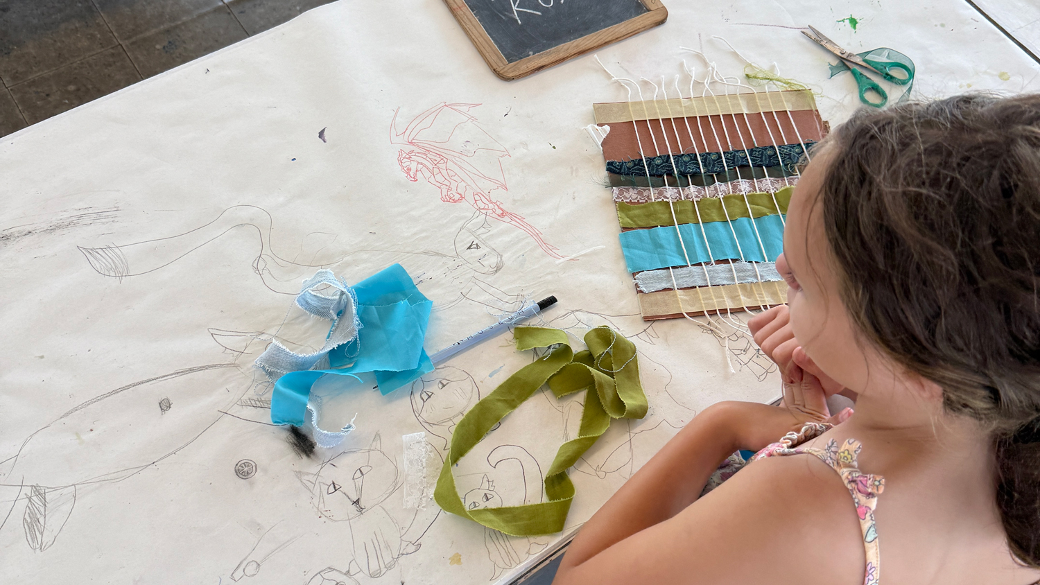 This week for 6–8 year olds focuses on fiber arts, introducing weaving, fabric collage, and textile exploration as additional pathways for creative discovery. The Art Barge provides all materials and its inspiring seaside setting to support a meaningful creative experience.