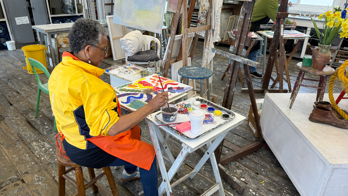 The Art Barge Napeague Meadow Road, Amagansett, United StatesOpen to all levels All supplies provided Participants can tour the D’Amico House midweek Immerse yourself in the spontaneous and expressive medium of gelli printing, a mono-printing technique that uses a gelatin plate to press on paper. Explore this approachable medium through an array of materials and methods, including botanical impressions; textured prints with mark…
